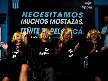 A través de la acción Por Racing #MePintoDeMostaza, cientos de hinchas celebraron el inicio del torneo luciendo pelucas y tiñéndose el pelo color mostaza en el stand que Topper instaló en el cancha de Racing.