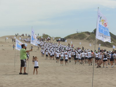 Como siempre en la mitad del recorrido un puesto de hidratación especialmente montado por Gatorade y Eco de los Andes, permitía reponer fuerzas a todos los corredores y poder así emprender el tramo mas exigente de la prueba con dos fuertes ascensos a los medanos mas altos y el regreso a Sport Beach Chevrolet; aquí también sumo su presencia el viento que ponia su resistencia a los corredores, los que fueron acompañados todo el tiempo por una gran cantidad de publico que alentaba sobre la arena, desde sus cuatriciclos o vehículos 4x4..
