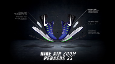 Con el objetivo de continuar innovando y fusionando el diseño con la última tecnología, Nike presenta Nike Air Zoom Pegasus 33, las nuevas zapatillas de running para atletas veloces. El rendimiento de los grandes atletas como Mo Farah, Oro Olímpico y Campeón Mundial de 5.000 y 10.000 metros, y que registra cerca de 200 kilómetros de entrenamiento semanales, pone de manifiesto que el kilometraje es un componente clave de su éxito.