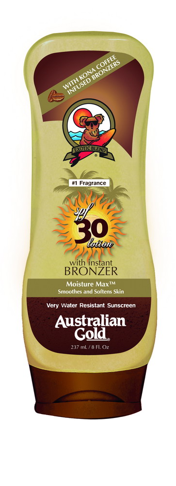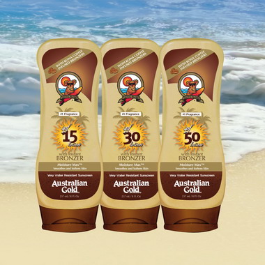 La línea Lotion Bronzer de Australian Gold está conformada por cremas protectoras solares que otorgan un tono bronceado instantáneo, y formulada con aceites hidratantes exóticos que protegen la piel del efecto de los rayos UVA, UVB y radicales libres, en tanto que ayudan a mejorar el aspecto de la piel desde el minuto uno, igualando los tonos de piel  y proporcionando la más efectiva protección contra en fotoenvejecimiento prematuro.