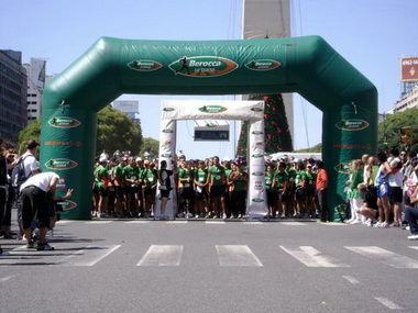 Una vez ahi retiramos las remeras, chips y demás y nos fuimos a la largada. Cerca del obelisco también había calles cortadas por otra carrera.