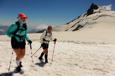 Ya en el campamento todos estábamos felices y mentalizados de que nos esperaban tres días durísimos. El viernes a la mañana arrancamos la carrera luego de pasar un puente colgante que se construyó especialmente para el Cruce. El recorrido comenzó con unas pequeñas cuestas muy parecidas a las que practicamos todos los que vivimos en Capital Federal, pero el camino se puso cada vez más complicado y empinado pero no fue nada al lado de los que teníamos enfrente apenas llegamos al volcán: Casi 2 kilómetros en hielo con una pendiente de 65 grados, con el suelo muy resbaladizo no apto para gente sin experiencia. Luego de eso hubo que dar una vuelta interminable de más de 9 kilómetro alrededor del cráter del volcán.