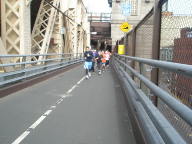 Nos dividieron en grupos que haríamos distintas distancias, me enganche en 7 millas, había otro de 10, pero era con cuestas. Calentamos un poco las articulaciones dentro del local de Nike Town y arrancamos hacia el este, luego de unas cuadras nos dirigimos hacia el norte y ahi estaba, la bicisenda del puente Quennsboro, se parecía mas a Zarate brazo largo que al puente de Dorrego.