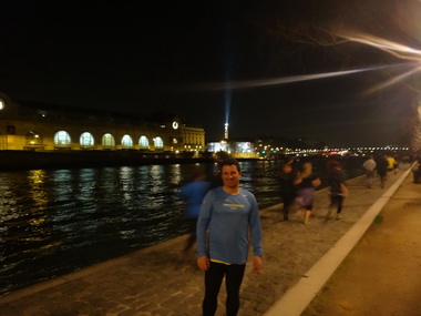 Repentinamente en el Port de la Conference nos detuvimos para hacer algunos ejercicios, algo aerobico acompañado de elongación. Supongo que serian las 21 horas por que las luces de la Torre Eifel no dejaban de parpadear indicando la hora en punto.