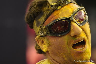 Fucsia, verde, azul y amarillo fueron los colores usados para pintar a los corredores con este talco que volaba por el aire generando un clima de alegria en la remeras blancas de los participantes.