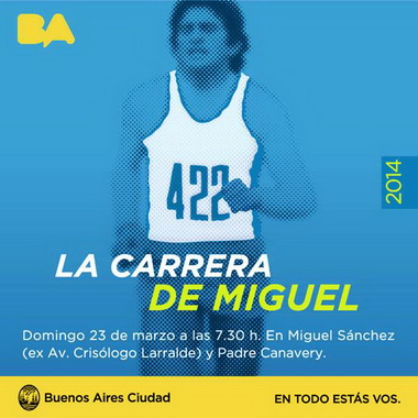 La Subsecretaría de Derechos Humanos y Pluralismo Cultural junto con la Subsecretaría de Deportes de la Ciudad de Buenos Aires y el Club de Corredores, realiza el Domingo 23 de marzo a las 7.30 hs. una nueva edición de la Carrera de Miguel, en homenaje al atleta Miguel Sánchez, desaparecido en 1978 durante la última dictadura militar.