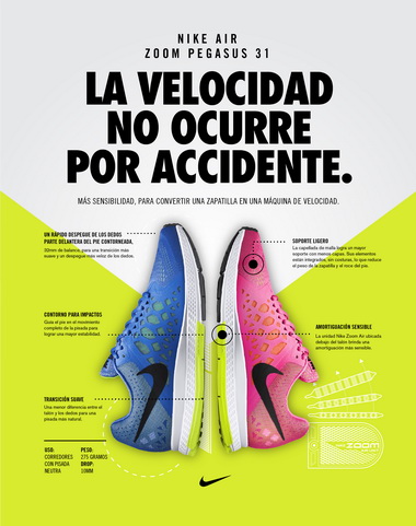 El nuevo modelo es una máquina de velocidad, distancia y reactividad. Las Pegasus han evolucionado en sus más de 30 años pero siempre mantienen su raíz que las ha llevado a ser amadas por los corredores: buena amortiguación y confiabilidad. Gracias a la unidad de Nike Zoom Air debajo del talón, las Nike Air Zoom Pegasus 31 brindan una amortiguación altamente reactiva, sujeción ligera y una pisada natural.