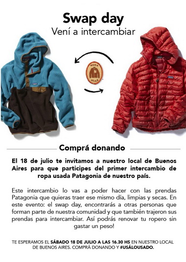 Lo más interesante de esta iniciativa es que, con la donación de esa prenda usada, Patagonia permite comprar donando porque cada prenda Patagonia que sea donada en Worn Wear Room, va a comenzar una segunda vida en el Swap Day, un evento de intercambio de ropa que se hará en Patagonia Buenos Aires en colaboración con la agencia creativa Miracle, el sábado 18 de julio a las 16.30hs, donde se encontrarán muchos prendas donadas.