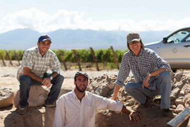 Mariano Quiroga Adamo (Enólogo), Santiago Bugallo (Ing. Agrónomo) y Paul Hobbs, asesor enológico estudian las cualidades de los suelos de Cafayate en búsqueda de la máxima calidad en Salta.