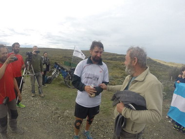 “Ya en el pueblo 28 de Noviembre, al sur de Santa Cruz. 4.878 Kms corridos desde la salida en La Quiaca. Cada día la Ruta 40 sigue deparando nuevas sorpresas, por sus vientos y terrenos indescifrables, por sus paisajes cambiantes y por su gente, siempre su gente. Nos agasajaron con toda generosidad Jorge, Eduardo, Miguel y Fernando de El Calafate, quienes ya venían apoyando a la distancia desde hace meses. En noches hostiles y con el cuerpo cansado por la acumulación de Kms, encontramos cobijo y apoyo emocional en los puestos viales de Cerrito y de Tapi Aike. En cada pueblo que alcanzamos y hasta en algunos tramos de la ruta se da una constante: se acercan chicos que preguntan, que tienen inquietudes, que corren algunos metros, que se esfuerzan, que se entusiasman, que se ilusionan, que se apasionan, que sueñan. Su chispa será el fuego sagrado del futuro. Verlos emociona y motiva. Tienen una vida de sueños por delante. Ya estoy en el tramo final del sueño de mi vida. Tengo el compromiso de cumplir el objetivo. Duele el cuerpo. Duele la distancia de la familia. Pero no les fallaré. Ellos tampoco fallarán. Llevarán a nuestro increíble país lejos, bien lejos. Solo debemos mostrarles que todo sueño, todo objetivo, con pasión, con preparación y con unión, es posible”