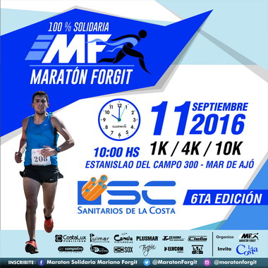 Al cumplirse el primer aniversario deseábamos recordarlo pero también deseábamos realizar una acción social en la localidad, y de esta unión surgió Maratón Solidaria Mariano Forgit en la Localidad de Mar de Ajo, Partido de la Costa, un evento deportivo solidario que abarca muchos aspectos, como en lo deportivo, salud, turismo, compromiso e inclusión social y solidaridad.
